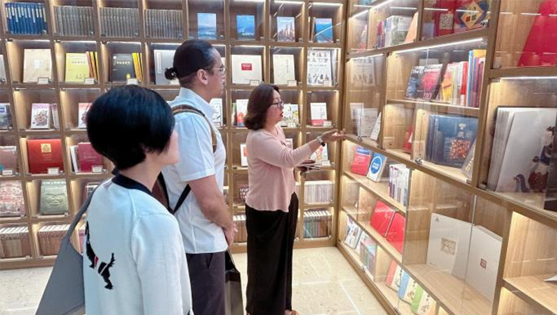 沈友友夫妇参观了我社40周年社庆主题书展,并同我社社长汪涛、副总编辑李晨曦及相关部门业务人员进行了会谈。双方围绕《中国关键词:文明互鉴篇》、《中国关键词:传统文化标识篇》、《以遗知音:中国唐代诗选》(汉葡对照)等项目合作展开讨论,并达成初步合作意向,在推进中华优秀传统文化对外传播、建设中国现当代文学产品线、助力中拉文化交流互鉴等方面达成共识。